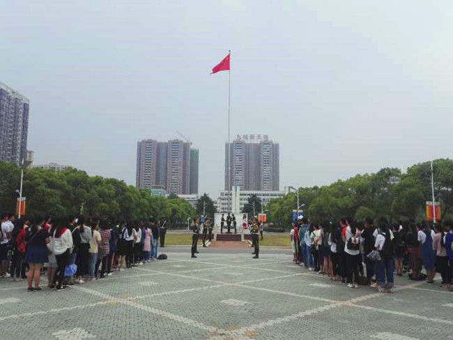 2017年5月15日,新闻与传播学院在主教学楼前举行2016-2017学年第二学期第十四周升旗仪式。党总支书记杜建东、副书记黄佑和、分团委书记刘砚硕、大一辅导员熊伶俐老师以及全体16级学生参加了本次升旗仪式。