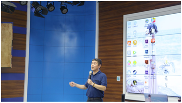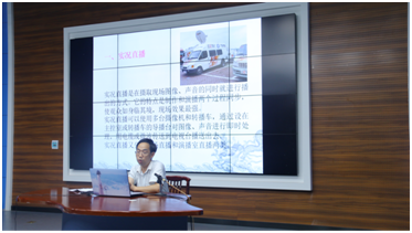 第五讲(7月10日14:20—16:00)主讲人为黄冈广播电视台技术部主任胡子德,讲座题为“电视节目制作流程与标准”。胡子德主任以谦谨的态度,耐心的讲解了电视节目制作从前期策划到拍摄到后期制作的一系列专业技术要求。讲解内容清晰,学生们听课专注。