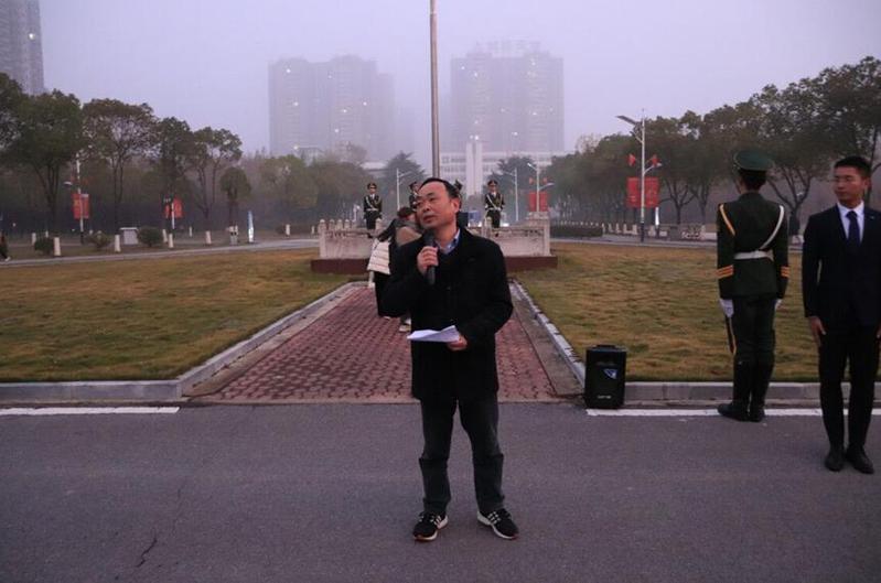 清晨六点半,升国旗仪式准时开始。伴随着振奋人心的《义勇军进行曲》,五星红旗冉冉升起,全体师生共唱国歌,向国旗行注目礼。播音1901班李幸源同学作了题为《爱国情怀,应于心中,应化于行》的国旗下演讲。