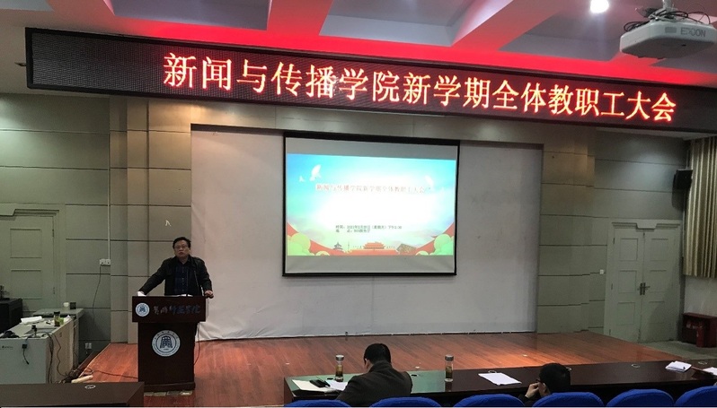 2月28日,学院在博学楼B03报告厅,召开了2021年新学期第一次教职工大会。会议由学院党委书记周俊飞同志主持。