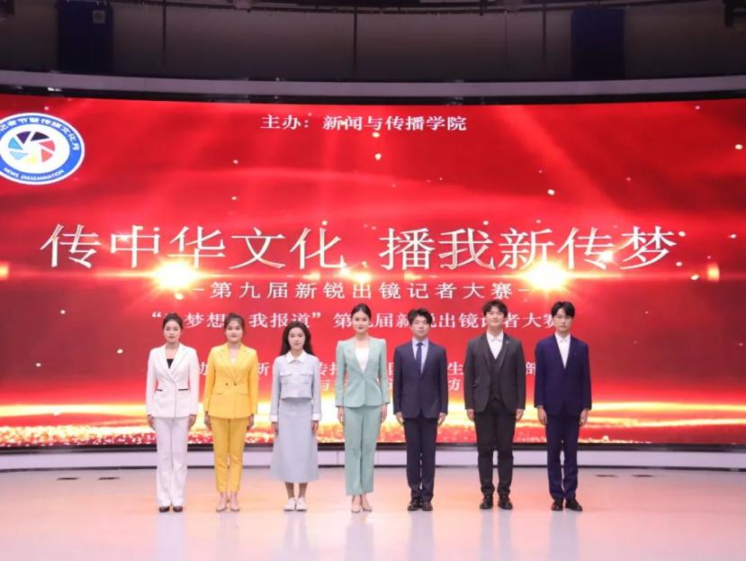 12月8日晚,新闻与传播学院第二十届传媒文化艺术节子项目第九届新锐出镜记者大赛决赛在学院演播厅成功举办。新闻与传播学院副院长、播音与主持艺术专业教授姚娟、负责人刘砚硕、副教授李强、教研室主任周萍萍、专业教师范睿一担任大赛评委,22级与23级播音与主持艺术专业的学生观看了比赛。