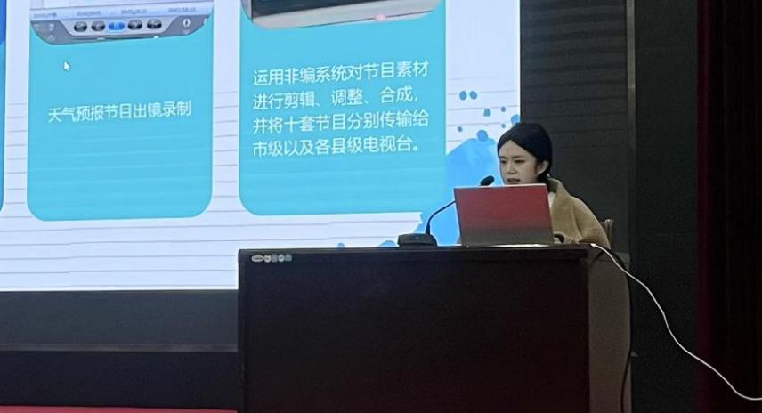 接着,校级优秀指导老师胡雨晴结合自己带队的实习经历,分享了四点心得体会。首先,她提倡根据个人专业所长,在各自岗位上发挥各自的作用;其次,她强调在当下多学科交叉融合的趋势下,要拓宽视野,学习更多专业知识,掌握更多技能以适应社会发展;再次,她建议学生们要低调行事,开阔眼界,不必局限于大城市实习,县级融媒体中心也有广阔的发展空间和潜力;最后,她鼓励学生们要有勇于吃苦耐劳、敢于担当作为的奋斗精神,成为有理想、有本领、有担当的新时代青年。