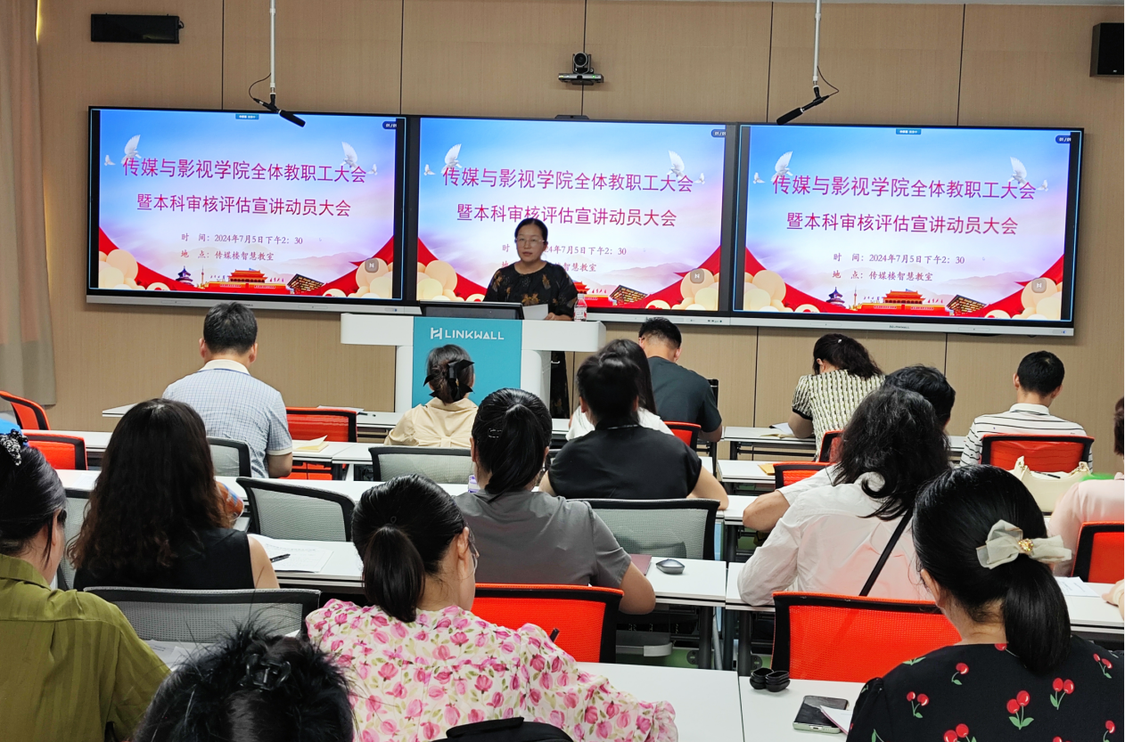7月4日下午,bwin必赢在线登录入口在传媒楼智慧教室召开了全体教职工大会暨本科审核评估宣传动员大会,此次会议旨在明确学院暑期各项工作任务,确保学院教学、管理和科研等工作有序进行,并为即将到来的本科审核评估做好充分准备。